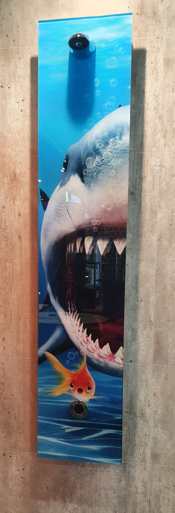 Glasfront som tillbehör till ACSS Duschpanel härdat glas för bästa möjliga tålighet. Lättare att hålla rent än vanlig rostfri panel. Går att beställa i valfritt motiv eller enfärgat. Passar flertalet duschpaneler.