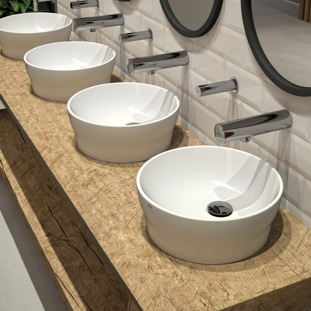 Självstängande mekanisk tappventil för förblandat eller kallt vatten. Finns med eller utan Anti-Blockering-System (ABS) som förhindrar att tappventilen flödar när knappen hålles konstant nere (mot vandalism och vattenskador till följd av detta)