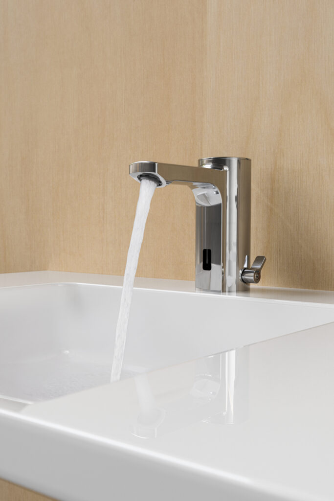 ACSS elektronisk tvättställsblandare Aquamix F5 Sense, för varmt och kallt vatten med flöde 5 liter/minut. ACSS art. nr. 24210.500.200